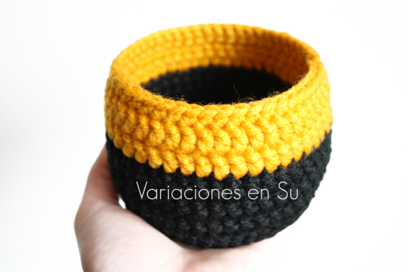 Cesta de ganchillo en amarillo y negro