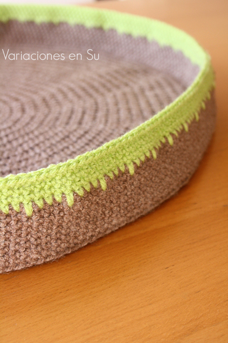Hace unos días, un amigo me preguntó si podría hacerle una cesta de ganchillo para su gato. Me puse manos a la obra y esto es lo que salió. Se trata de una cesta con forma circular y tejida en colores marrón y verde pistacho. ¡Ojalá le guste a su destinatario! Ya os contaré 🙂…